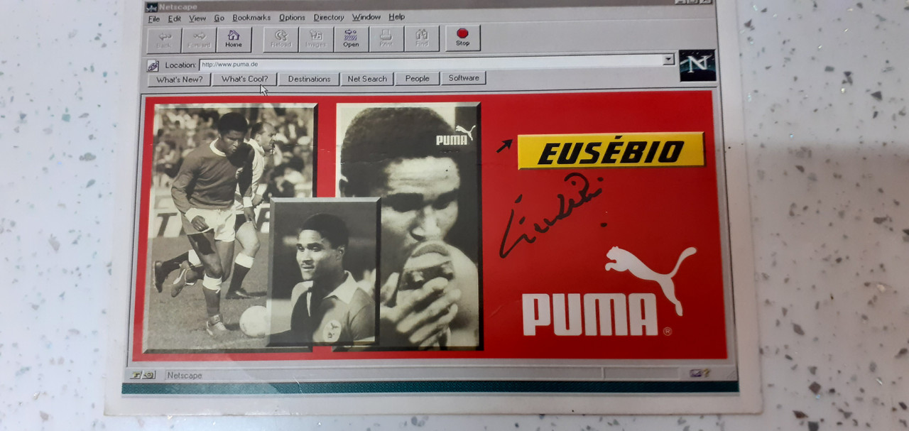 Numa dessas vezes em que íamos para o Estádio da Luz (96/97) eu e os meus três amigos da altura demos de caras com o Eusébio. Nós éramos putos, fazíamos barulho e pedimos-lhe um autógrafo. Ele começou a fazer gestos com as mãos (como quem diz, estes putos são barulhentos), não assinou e, ao invés disso, deu-nos um cartão destes a cada um que tem o autógrafo á frente e os dados da carreira atrás.