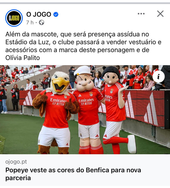 Citação de: Barolas em 25 de Março de 2025, 21:04O Benfica tem um novo parceiro: o Popeye, mítica figura da banda desenhada. Esta é uma nova colaboração que visa tornar o 'marinheiro' como uma das figuras do universo benfiquista. De acordo com a 'License Global', a colaboração inclui uma linha de vestuário e acessórios com a marca Popeye e Olívia Palito. A coleção ficará disponível nas Lojas Oficiais do Benfica, online e através de distribuição global.