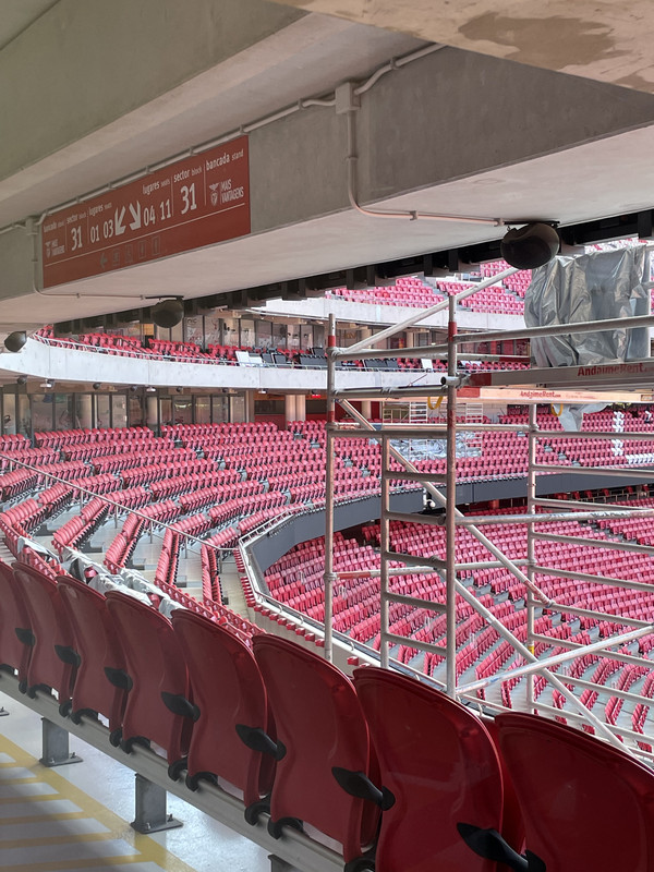 Faltam agora as cadeiras, o sistema de som e depois por fim as mudanças que mais anseio, no exterior. O sistema de luzes penso também que já está implementado. Aguardo também no futuro a adoção do sistema de lugares em pé no piso 0 da Sagres aumentando um pouco a lotação e alargando a claque.