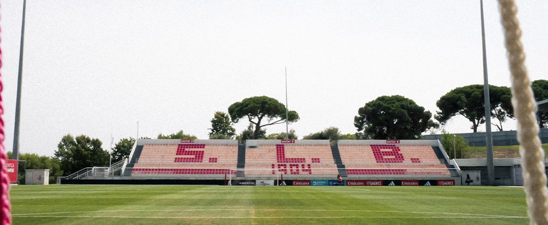 A nova imagem da bancada, atrás da baliza, do Benfica Campus.