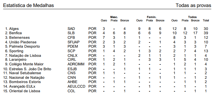 Palmarés da Natação Benfica: