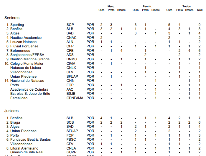 - Benfica 2º lugar nos 4x100 estilos juniores