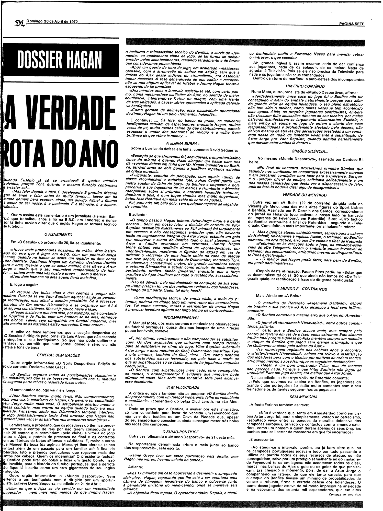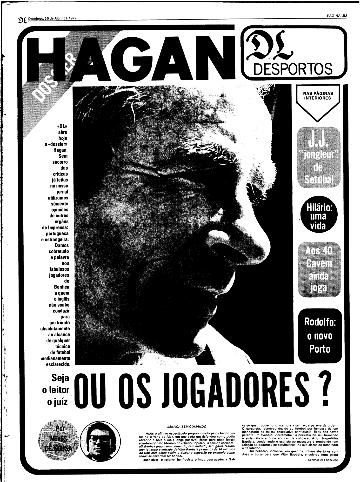 Logo após a eliminação do Benfica nas meias-finais da TCE'71/72 (aos pés do Ajax), o "Diário de Lisboa", na pessoa do jornalista Neves de Sousa, lançou um duro ataque a Jimmy Hagan com um dossier de quatro páginas em que vai enumerando todos os pecados e defeitos do britânico, acusando-o de ser um técnico "desactualizado", com o jornalista a terminar a peça com a tirada "tenho diploma de um curso de treinadores de futebol. E Hagan?"