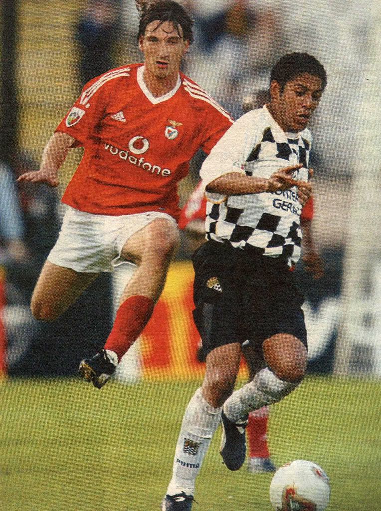 Gosto dessa foto. Vem em voo picado... Lembro-me de ele ter sido expulso numa situação no mínimo caricata. Amarelo por ter saído da barreira antes da marcação de um livre contra o Benfica. Repetição do livre e lá sai ele de novo antes de tempo. Rua. Mas o treinador na altura gostava muito dele. São coisas.