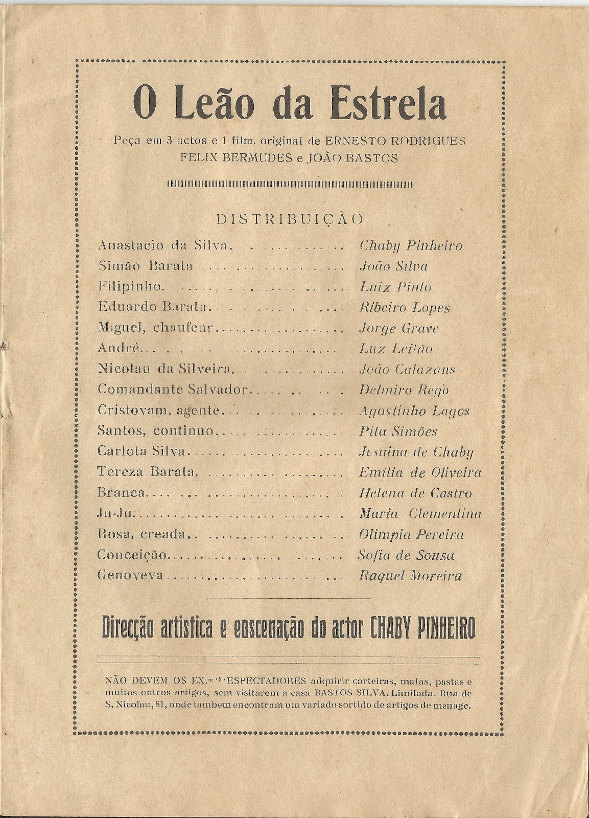 Em 1925, estreava no Teatro Politeama a peça intitulada «O leão da Estrela» da autoria de Ernesto Rodrigues, Félix Bermudes e João Bastos. Esta peça original era representada pela primeira vez no Teatro Politeama pela Companhia Chaby Pinheiro.