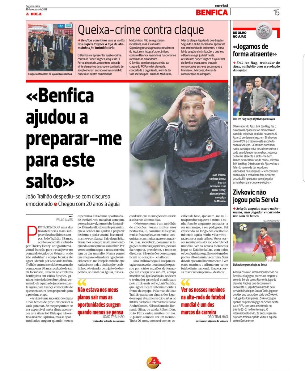 Mas para os fazer subir para a equipa principal do Benfica temos de ter um treinador capaz e preparado para os receber e faze-los evoluir no seu jogo individual e colectivo.