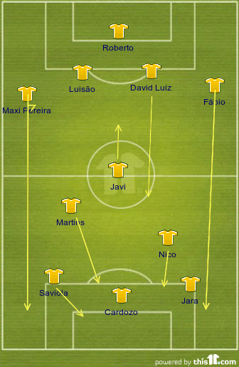 Eu jogava assim, vai depender da forma do Nico e do Luisão.