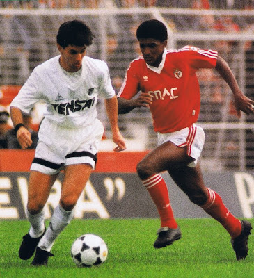 Este senhor conseguiu desviar as minhas atenções dos epás, dos cornettos, dos nogats, dos zainy crispy, das batatas fritas Pala-Pala, para dentro do relvado! Foi ele que me agarrou ao Benfica enquanto ele ia agarrando uns quantos adversários ao chão, num movimento simples e quase parado lol! Uma coisa é hoje que se finta em velocidade, aquele Senhor sentava-os a 5 à hora, depois a maneira suave e simples como libertava a bola cercado por adversários em que ela parecia telecomandada, os livres a mesma coisa lá ia ela sempre com selo de golo, ele tinha um toque de bola que nos levava ao êxtase de tanta classe...