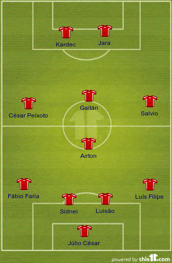 SL Benfica: Júlio César, Airton, Sidnei, Luisão, César Peixoto, Javi García (Luís Filipe [46m]), Pablo Aimar (Nuno Gomes [68m]), Nico Gaitán, Eduardo Salvio, Alan Kardec, Javier Saviola (Weldon [61m])