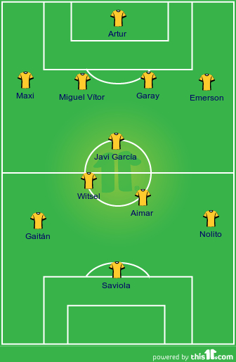 SL Benfica: Artur Moraes, Ruben Amorim, Jardel, Ezequiel Garay, Emerson, Javi García, Pablo Aimar (Axel Witsel [46m]), Nico Gaitán (Enzo Pérez [60m]), Nolito, Javier Saviola, Franco Jara
