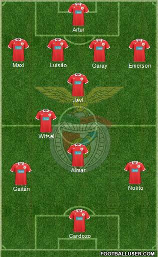 SL Benfica: Artur Moraes, Maxi Pereira, Luisão, Ezequiel Garay, Emerson, Javi García, Axel Witsel, Pablo Aimar, Nico Gaitán (Bruno César [74m]), Nolito (Nemanja Matić [74m]), Óscar Cardozo (Javier Saviola [84m])