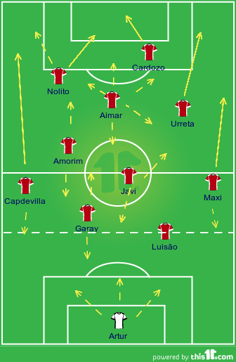 Estes seriam dois jogadores que a par dos avançados Cardozo e Nolito, iriam ao longo do jogo mudar de posições/flancos.