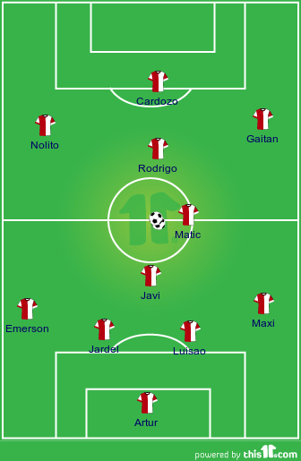SL Benfica: Artur Moraes, Maxi Pereira, Luisão, Jardel, Emerson (Javier Saviola [83m]), Javi García, Axel Witsel (Rodrigo [73m]), Nico Gaitán, Nolito (Pablo Aimar [46m]), Nélson Oliveira, Óscar Cardozo