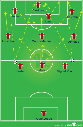 SL Benfica: Paulo Lopes, André Almeida, Jardel, Sidnei, Luisinho, Nemanja Matić, Carlos Martins (Bruno César [57m]), Eduardo Salvio (André Gomes [65m]), Nolito, Lima (Rodrigo [65m]), Óscar Cardozo
