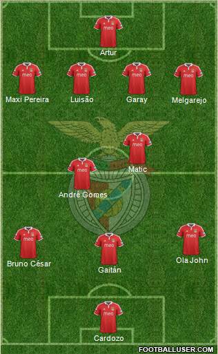 SL Benfica: Artur Moraes, Maxi Pereira, Luisão, Ezequiel Garay, Lorenzo Melgarejo, Nemanja Matić, André Gomes, Ola John, Nolito (Bruno César [63m]), Rodrigo (André Almeida [74m]), Lima (Óscar Cardozo [74m])