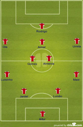 SL Benfica: Artur Moraes, Maxi Pereira, Luisão, Ezequiel Garay, Lorenzo Melgarejo, Nemanja Matić, Enzo Pérez, Eduardo Salvio, Nico Gaitán (Ola John [73m]), Rodrigo (Lima [64m]), Óscar Cardozo (Pablo Aimar [88m])