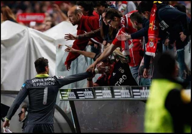 Não sei se deu as luvas. O que é de constatar e felicitar é que jogadores adversários, principalmente de um dos rivais, sentem-se à vontade no nosso próprio estádio para se dirigirem sem problemas e receios nenhuns aos nossos próprios adeptos. Acho que é uma bonita imagem de desportivismo quer do Patrício, quer dos nossos adeptos, que, infelizmente, nos dias de hoje não seria possível em qualquer estádio de qualquer clube.
