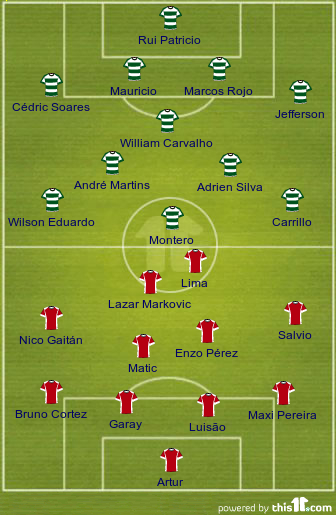Sporting CP: Rui Patrício, Cédric, Maurício, Marcos Rojo, Jefferson, William Carvalho, André Martins, Adrien Silva, Wilson Eduardo, Carrillo, Montero