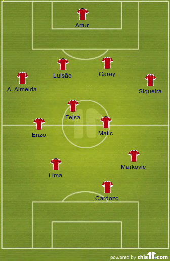 SL Benfica: Artur Moraes, Maxi Pereira, Luisão, Ezequiel Garay, Guilherme Siqueira (André Almeida [63m]), Nemanja Matić, Ruben Amorim (Ljubomir Fejsa [34m]), Enzo Pérez, Lazar Marković, Lima, Óscar Cardozo (Ola John [75m])