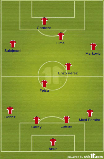 SL Benfica: Artur Moraes, Maxi Pereira, Luisão, Ezequiel Garay, Bruno Cortez, Ljubomir Fejsa, Nemanja Matić (Miralem Sulejmani [64m]), Enzo Pérez, Lazar Marković (Nico Gaitán [46m]), Lima (Rodrigo [80m]), Óscar Cardozo