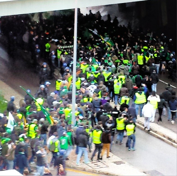 Calma pessoal. É pessoal de claques. É perfeitamente normal. Os adeptos normais vão vestidos normalmente. Picardias são normais e dão mais aquela "pica" para o jogo. Isto a meu ver claro.