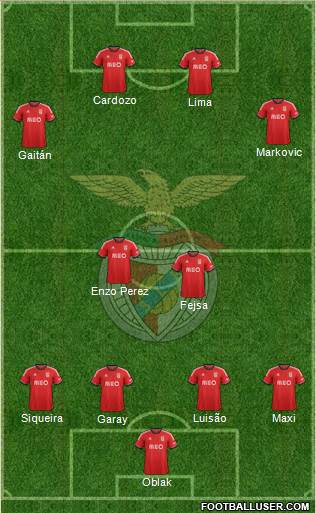 SL Benfica: Jan Oblak, Maxi Pereira, Luisão, Ezequiel Garay, Guilherme Siqueira, Ljubomir Fejsa, Enzo Pérez (Filip Đuričić [90+1m]), Lazar Marković (Eduardo Salvio [63m]), Nico Gaitán, Rodrigo (Ruben Amorim [80m]), Lima