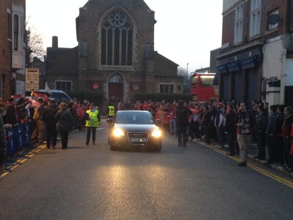 Some very noisy @SL_Benfica line the entrance to White Hart Lane in expectation of their team's bus @EuropaLeague"