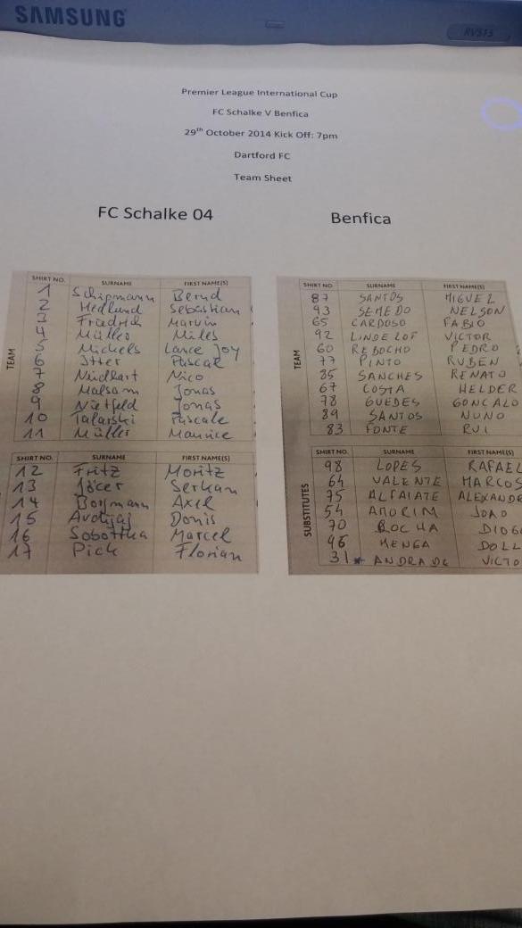 Premier League International Cup FG 1ª J: FC Schalke 04 B 0 - 1 SL Benfica B, 29Out. Qua. 19h00