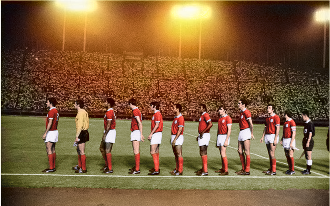 Da esquerda para a direita: Nené, José Henrique, Eusébio, Malta da Silva, Barros, Zeca, Matine, Jaime Graça, José Torres, Humberto Coelho e António Simões (cap.).