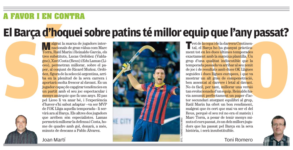 Tanto o Marc Torra como o Adroher são jogadores diferentes do Tuco, são mais tecnicistas e jogam preferencialmente mais ao ataque. Qualquer um deles é melhor que o Tuco, na minha opinião. Já o Carlos Lopez poderia perfeitamente ter feito mais uma época, é um verdadeiro génio.