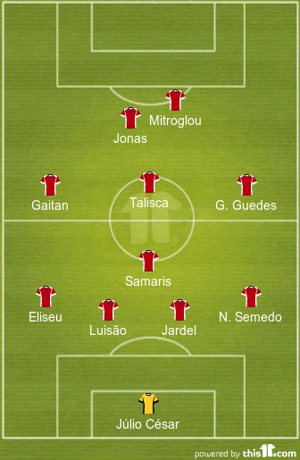 Avançados: Jonas, Mitroglou e Raul Jiménez.