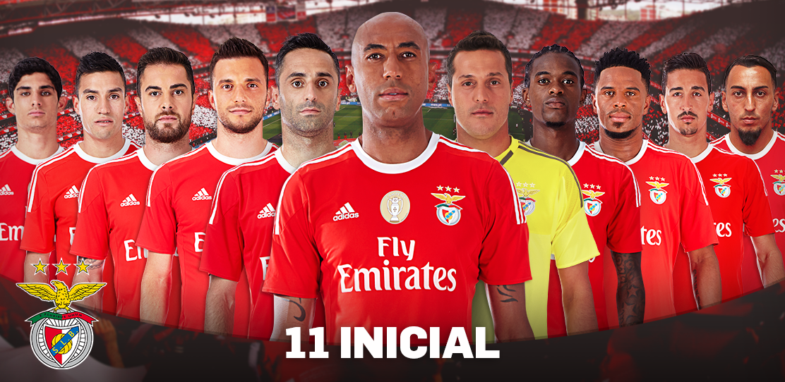 XI SLB: @ojuliocesar_12, Semedo, @luisao4oficial, Jardel, Eliseu, Samaris, @aalmeidaoficial, G. Guedes, @nicogaitan, @Jonas_Gol, @kmitroglou