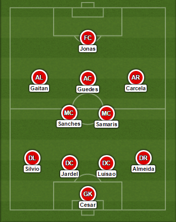 SL Benfica: Júlio César, Sílvio, Luisão, Jardel, Eliseu, André Almeida, Anderson Talisca (Bryan Cristante [90+3m]), Gonçalo Guedes (Mehdi Carcela [73m]), Nico Gaitán, Jonas (Pizzi [80m]), Raúl Jiménez