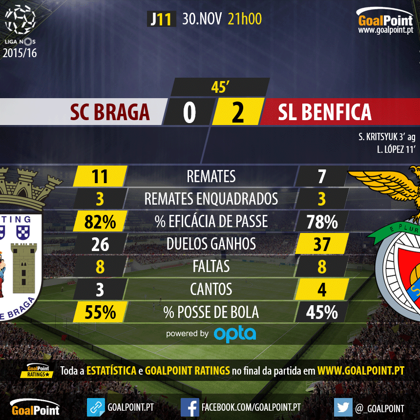 CN 11ª J: SC Braga 0 - 2 SL Benfica, 30Nov. Seg. 21h00 *SPORTTV1*