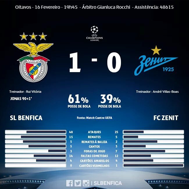 LdC 1/8F : SL Benfica 1 - 0 FK Zenit, 16Fev. Ter. 19h45 *RTP1*