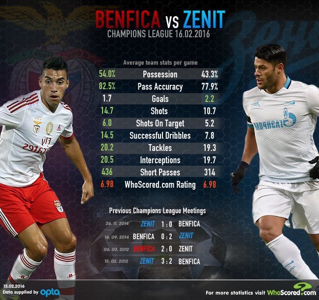 Sem Fejsa teremos sérias dificuldades para lutar com o meio campo do Zenit, se bem que eu acho que o Zenit tal como o Porto fez, procurará dar-nos a posse de bola e castigar-nos no contra-ataque.