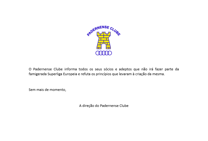 Mas não, o clube não nega a possibilidade da superliga europeia, devem andar a rezar a todos os santos para serem convidados, e, ainda por cima, com um histórico de prestações ridículas anos sucessivos.