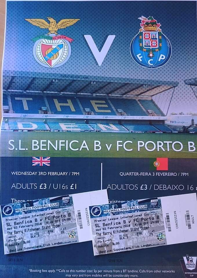 Millwall Football Club is pleased to announce that The Den will host a Premier League International Cup Quarter-Final tie between FC Porto B and S.L. Benfica B on Wednesday 3rd February (7pm).
