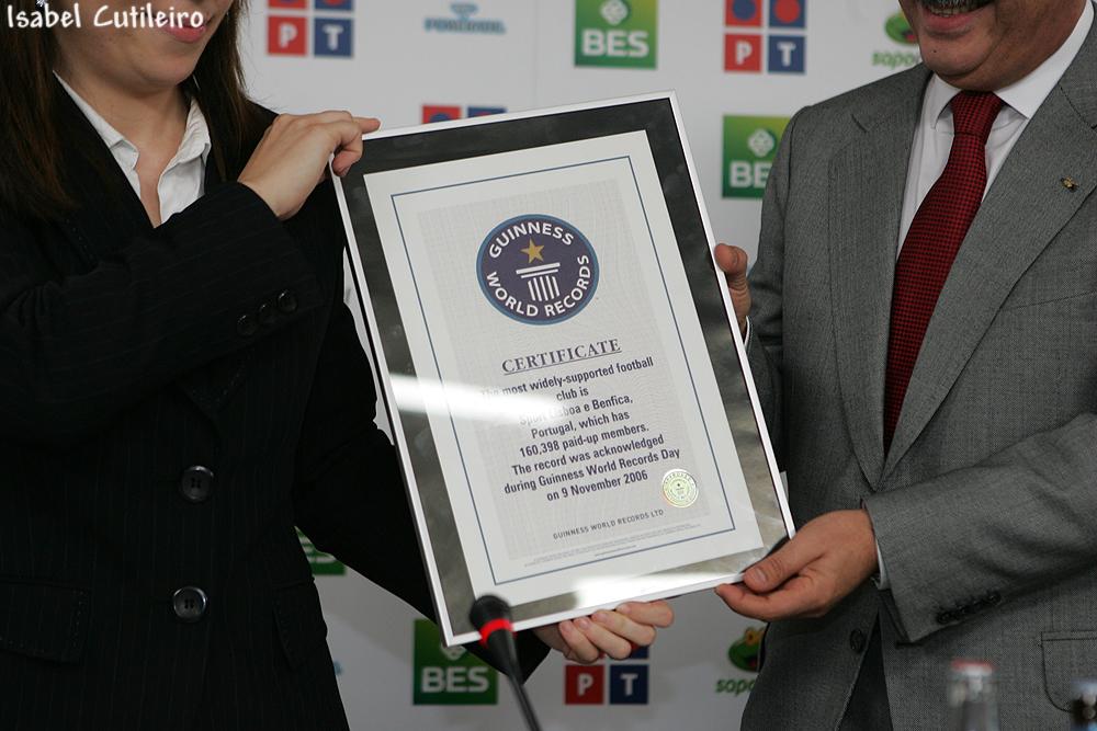 Em 2006, o Benfica passa a fazer parte do Livro dos Recordes do Guinness, sendo o clube com mais sócios. #112Anos