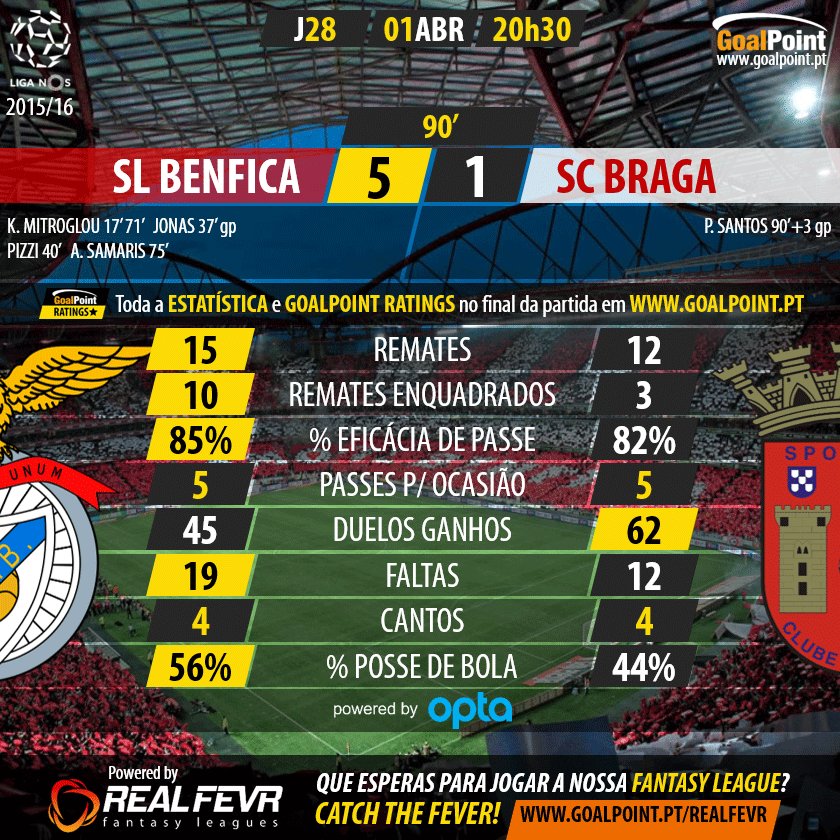 CN 28ª J: SL Benfica 5 - 1 SC Braga, 01Abr. Sex. 20h30 *BTV1*