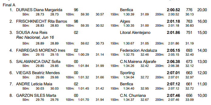 Além dos recordes, Diana Durães conseguiu ainda duas presenças entre os 16 primeiros. A nadadora considera que as classificações da equipa portuguesa "foram boas", apesar de não se terem registado muitos recordes pessoais.