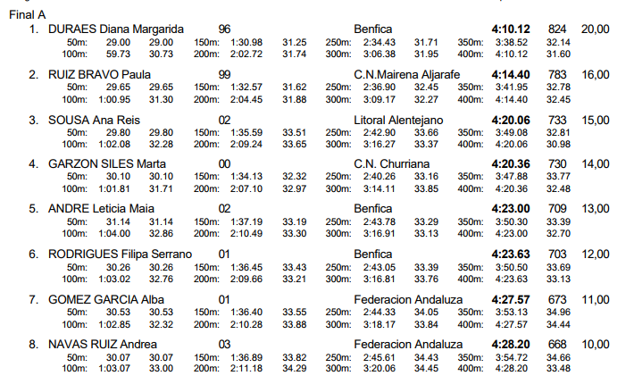 Venceu também os 200 e 400 livres do Meeting Internacional do Algarve