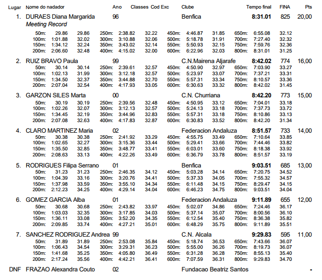 "Fiz dois recordes nacionais (400 e 800 livres). Normalmente, quando passamos de piscina longa para piscina curta, é sempre mais fácil fazer melhores marcas. Foi mais uma experiência, estive em duas finais com nadadoras como a Mireia, consegui estar a um bom nível novamente e isso foi importante porque fiz tempos que me vão dar uma série melhor no europeu e no mundial de piscina curta e isso é muito bom", refere.