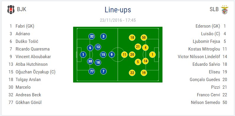 Beşiktaş JK: Fabri, Andreas Beck, Dusko Tosic, Marcelo, Gokhan Gonul, Atiba Hutchinson, Tolgay Arslan, Oguzhan Ozyakup, Ricardo Quaresma, Adriano, Aboubakar