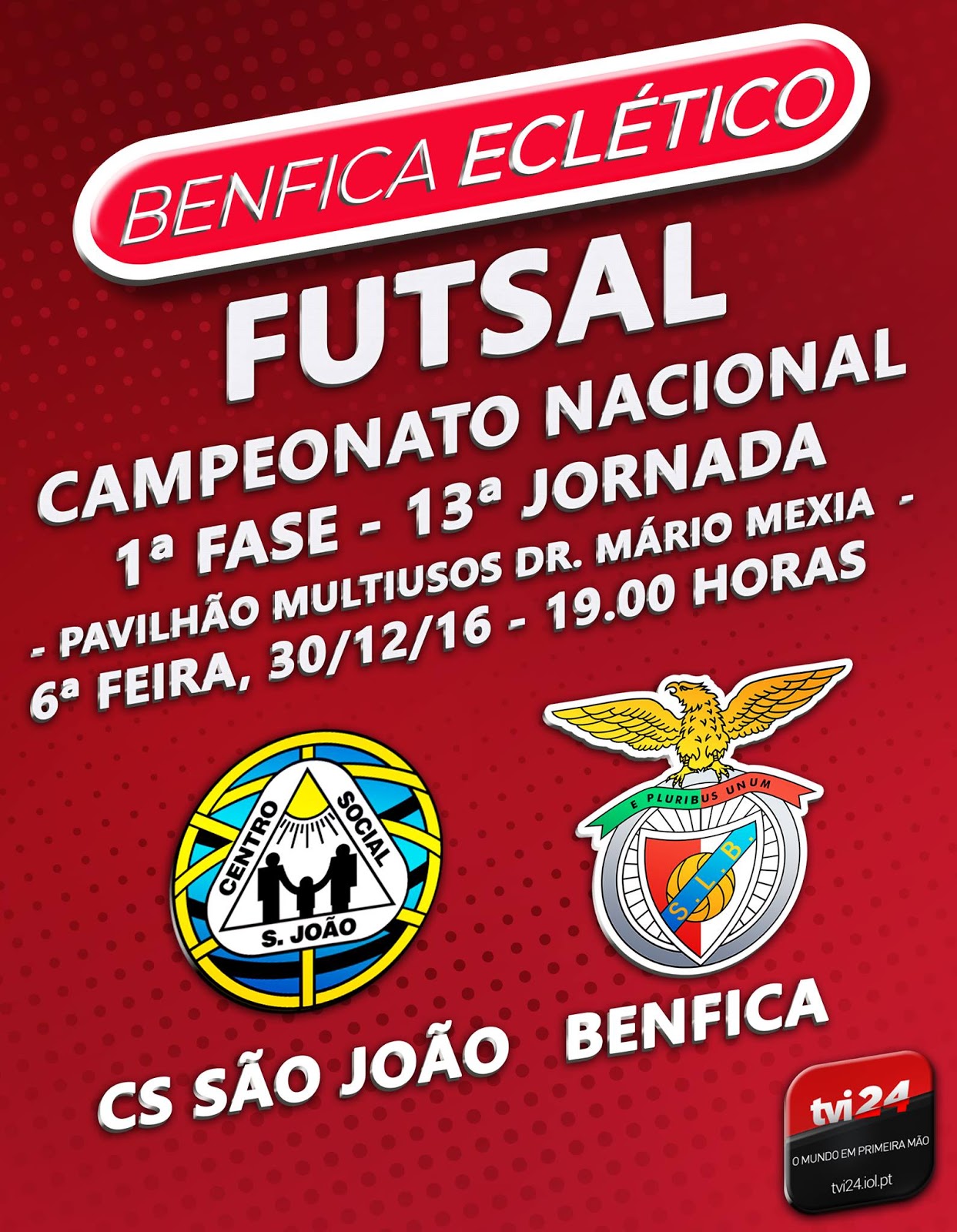 CN : CS São João 1 - 2 SL Benfica, 30Dez. Sex. 19h00 *TVI24*