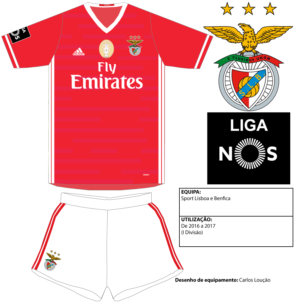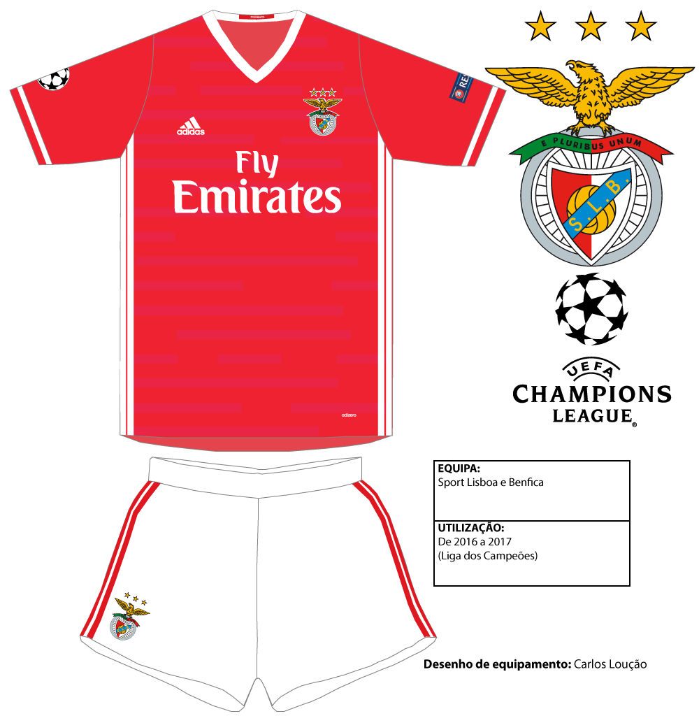 2016/17 trouxe mais uma inovação às camisolas do Benfica. Sob o tema "O hino que se veste", a intenção era incluir os versos do hino oficial do clube na mesma, numa campanha que até teve direito a vídeo com Rui Costa a fazer de maestro. A UEFA é que não achou muita piada à coisa e, em vez disso, a camisola acabou por ficar com uns riscos horizontais nos sítios previstos para os versos, as riscas da Adidas passaram dos ombros para as laterais da camisola e a gola passou a ser em bico. O alternativo passou a ser totalmente preto com os mesmos riscos do "hino" e as riscas da marca nos ombros.