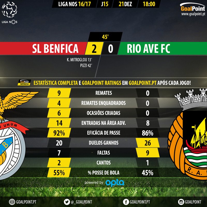 CN 15ª J: SL Benfica 2 - 0 Rio Ave FC, 21Dez. Qua. 18h00 *BTV1*