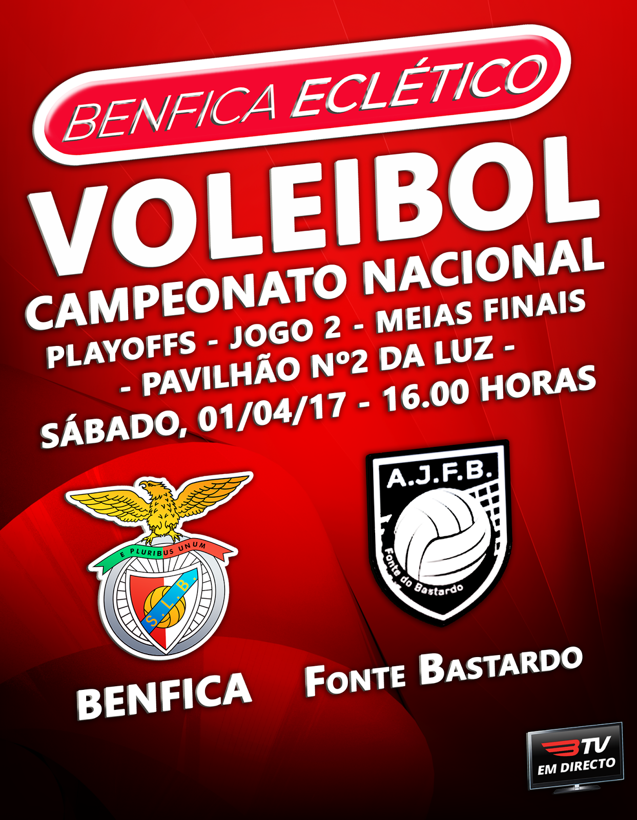 CN J2: SL Benfica 3 - 0 AJ Fonte Bastardo, 01Abr. Sáb. 16h00 *BTV1*