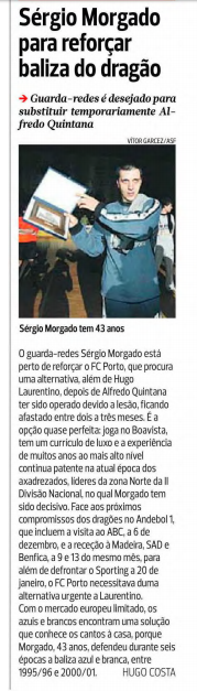 Quando vi essa notícia pensei que fosse outro qualquer. Algum miúdo que tivesse aparecido muito recentemente e que não conhecesse. Este Sérgio Morgado?!