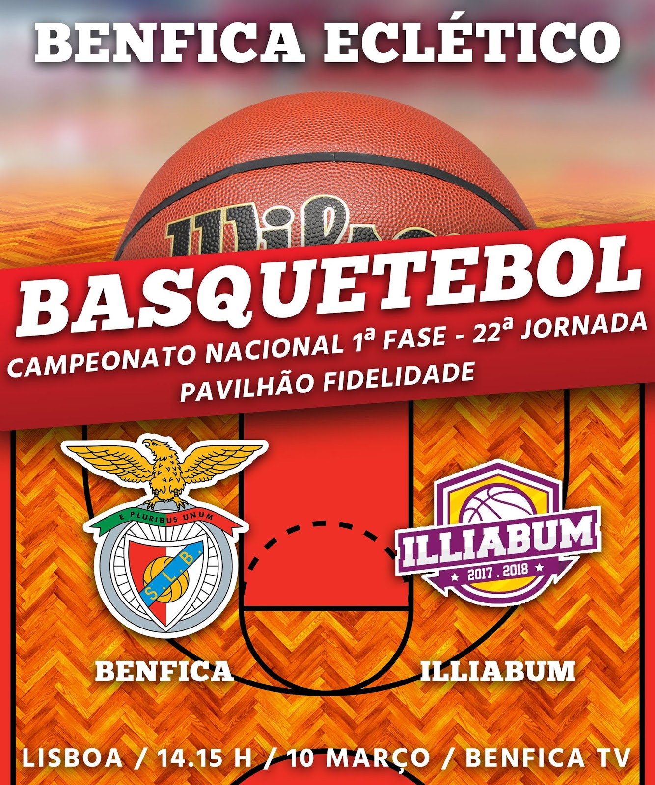 CN Fase Reg. 22ª J: SL Benfica 104 - 95 Illiabum Clube, 10Mar. Sáb. 14h15 *BTV1*